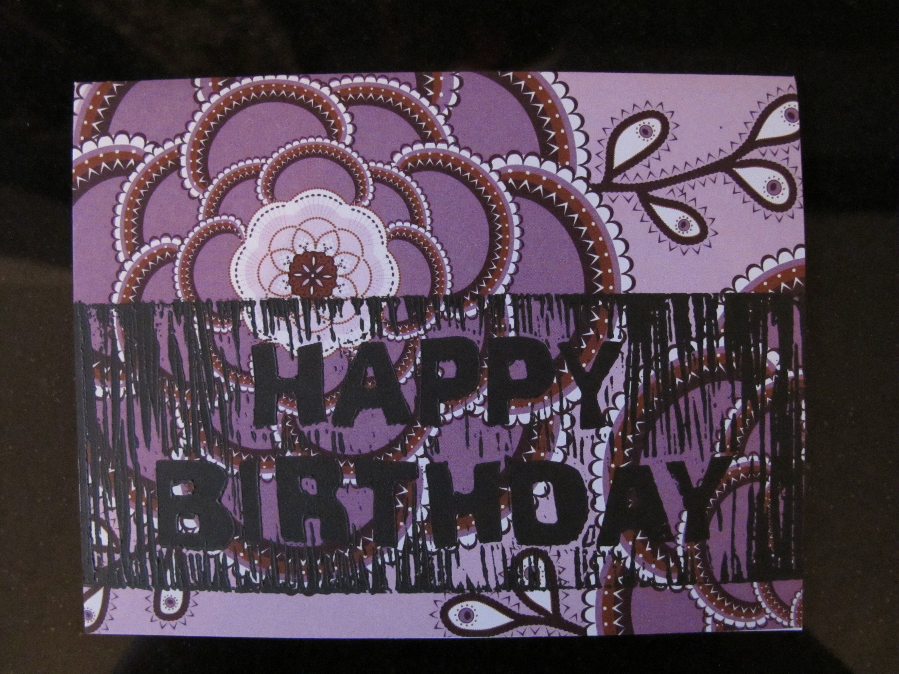 Here are some birthday and multi-purpose cards. As you can see I have a favorite carving of Happy Birthday so I’ve used it on a variety of backgrounds. I’ve recently carved another version with smaller scale letters, but the cards I printed with those letters are drying and haven’t yet been photographed.