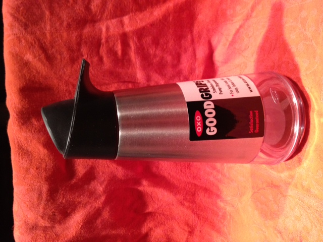 Last year I found an OXO soap dispenser that I thought was brilliant. The beautiful design in brushed chrome and black plastic has a clear plastic portion on the bottom inch of the dispenser. As my dish detergent is orange-colored, it gave a nice hit of color by the sink, and it was easy to see when the detergent level was getting low.
