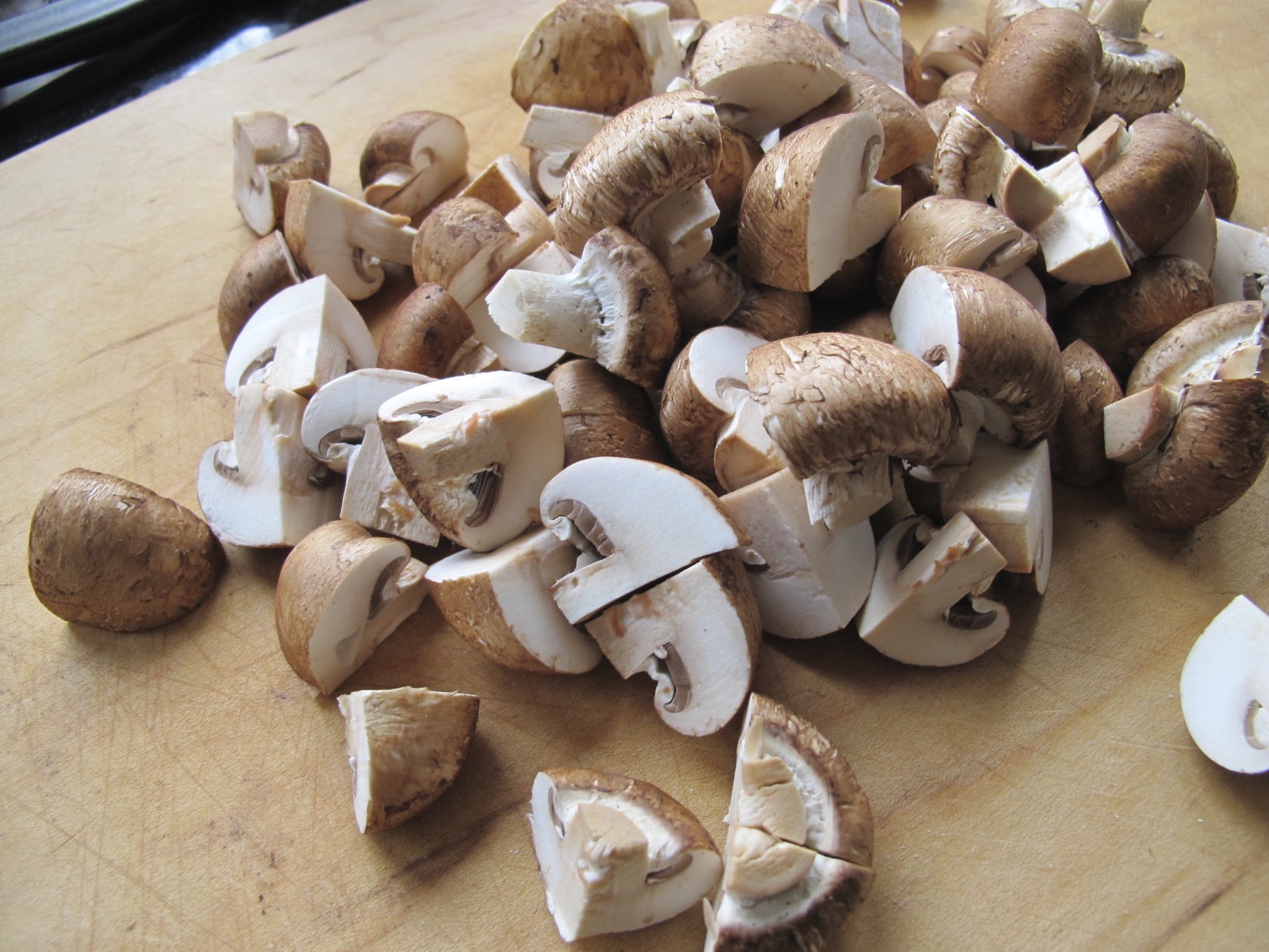 1 pile of mushrooms, quartered
