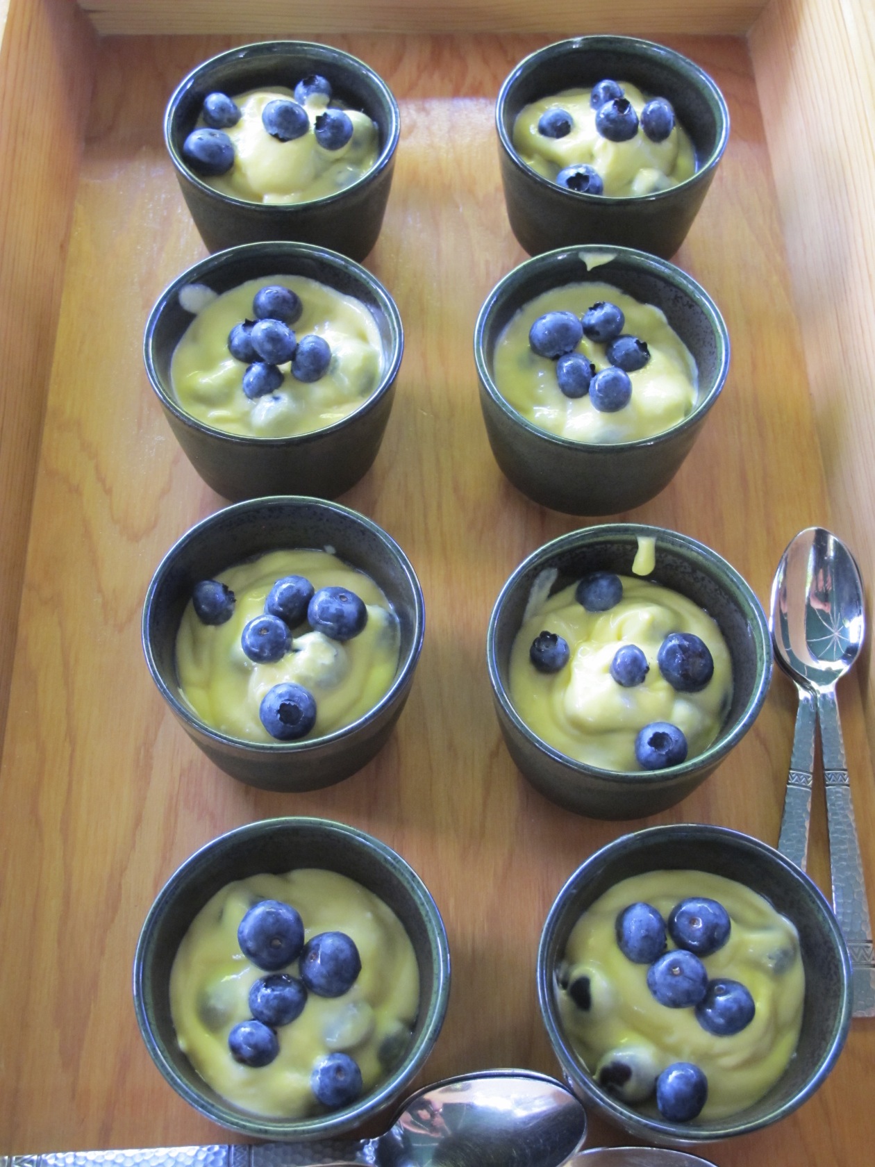 We finished our lunch with mango fool and fresh blueberries. With good food, great friends and glorious weather, it was a wonderful lunch. I’ll be posting recipes for the menu as I find time.