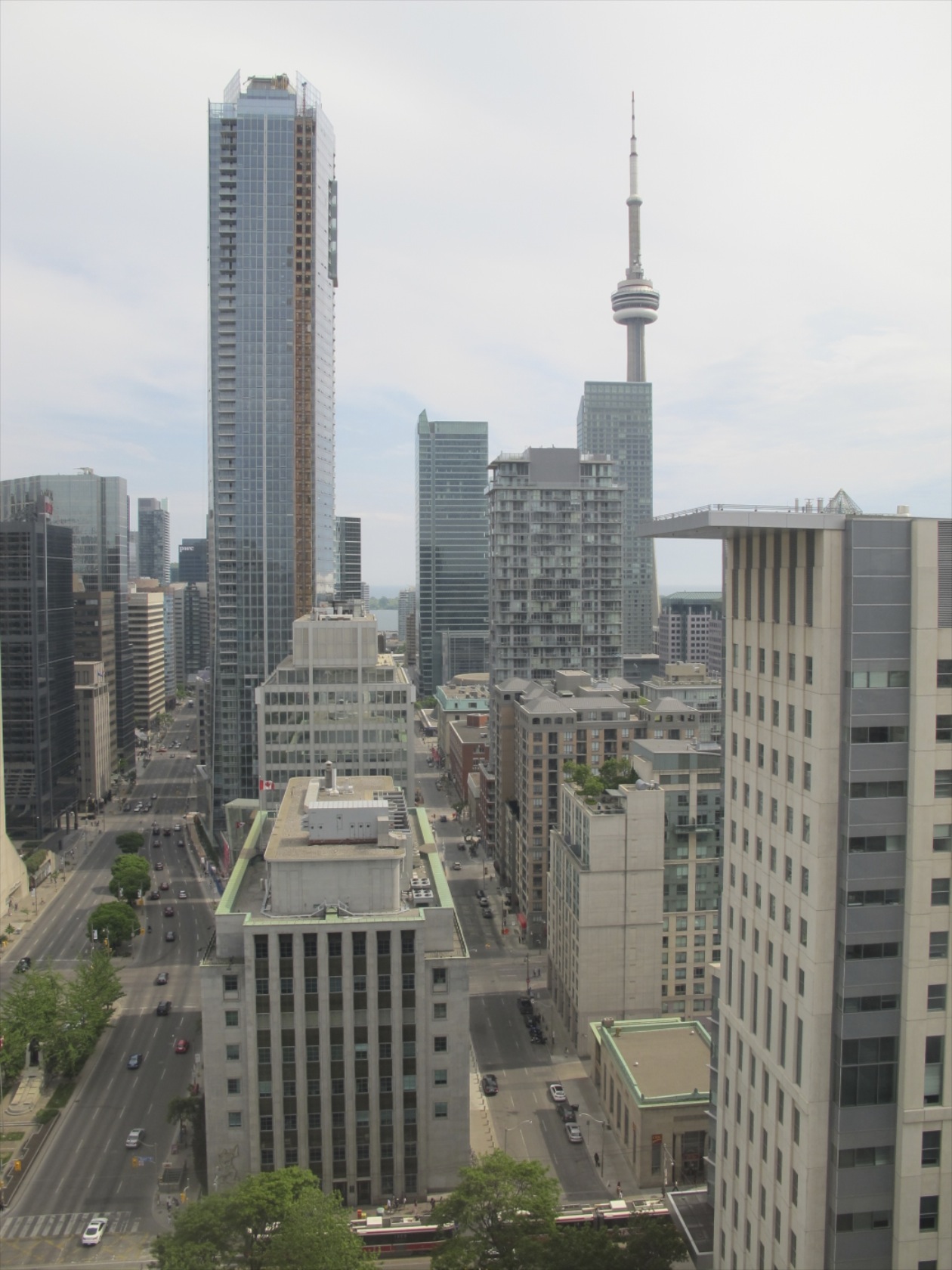 A portion of the city skyline, including the CN Tower in Toronto. This tower still holds the record as the world’s tallest tower. ( World’s Tallest Tower is defined by both Guinness World Records and the Council on Tall Buildings and Urban Habitat as “a building in which less than 50% of the construction is usable floor space”. ) Pretty amazing considering that it was built in 1976.